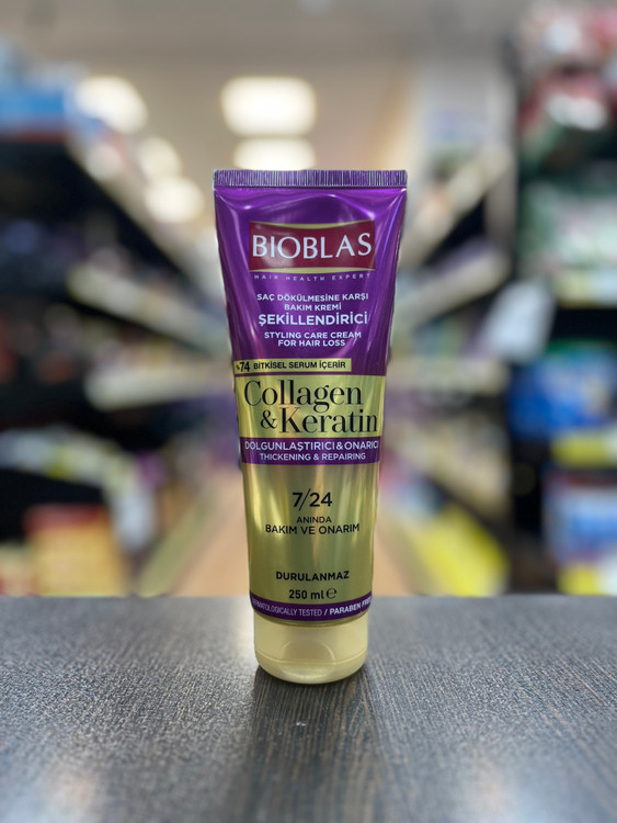 کرم مو ضدریزش و حالت دهنده بیوبلاس حاوی کلاژن و کراتین و قابل استفاده با موهای خیس و حتی خشک می باشد.