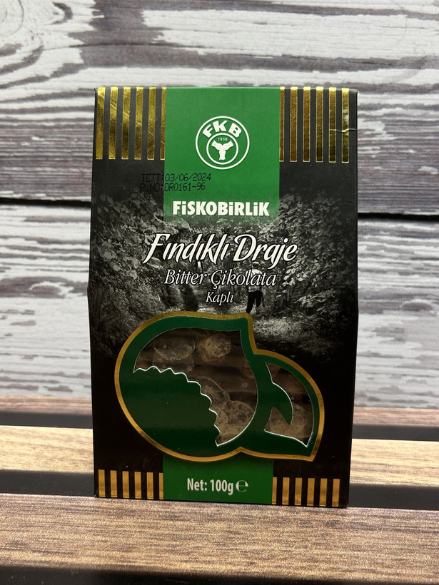 دراژه فندقی فیسکوبیرلیک با روکش شکلات تلخ 100 گرم
