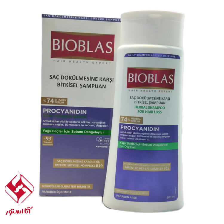 شامپو موی چرب بیوبلاس bioblas با خاصیت ضد ریزش حاوی ویتامین B3 حجم 360 میل