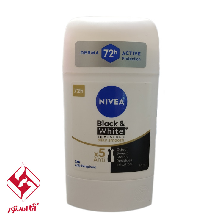 مام ضد تعریق صابونی NIVEA مدل بلک اند وایت محافظتی 72 ساعته در برابر تعریق و بوی بدن ارائه میدهد. این محصول با بهرهگیری از فناوری پیشرفته ضد لک از ایجاد رد سفید روی لباسهای تیره و زرد شدن لباس های روشن جلوگیری میکند. فرمولاسیون آن حاوی ترکیبات نرمکننده پوست است که پس از استفاده، احساس لطافت و نرمی به پوست میبخشد. تکنولوژی امولسیون به کار رفته در مامضد تعریق زنانه نیوا مدل بلک اند وایت INVISIBLE، هنگام استفاده حس تازگی و راحتی روی پوست ایجاد می نماید.