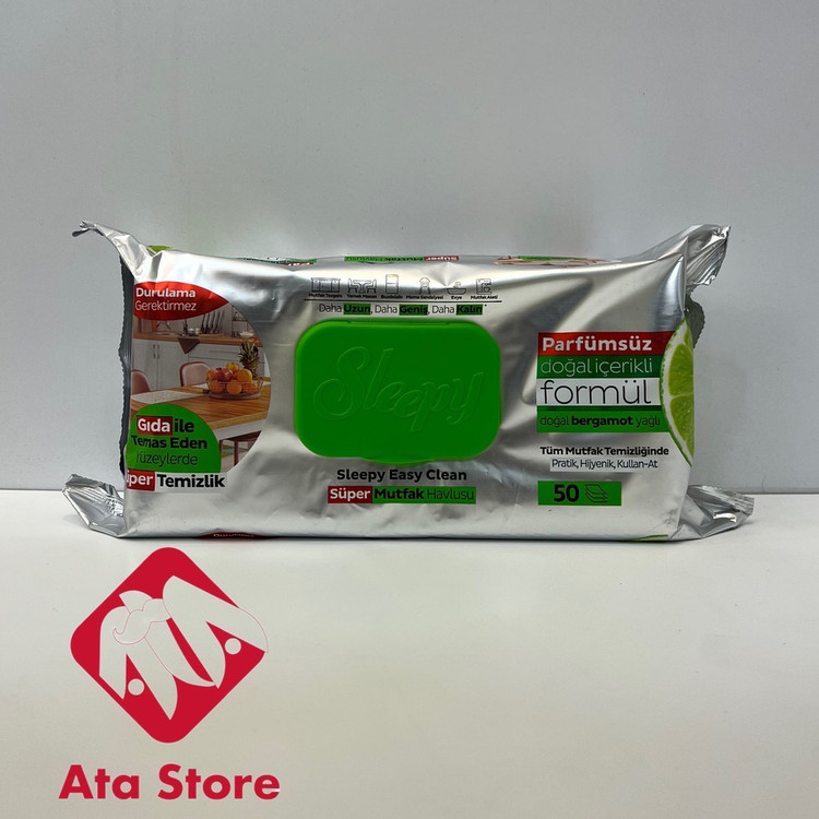 دستمال مرطوب آشپزخانه اسلیپی (Sleepy Easy Clean) یک ابزار سریع، ساده و مؤثر برای تمیزکردن سطوح چرب و کثیف در آشپزخانه است که بدون نیاز به آب یا شویندههای اضافی عمل میکند و بافت مناسب و فرمول ملایماش آن را برای نظافت منظم آشپزخانه ایدهآل میکند.